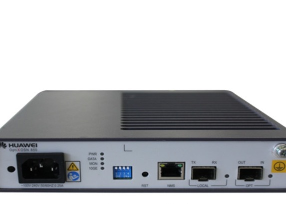 The OptiX OSN 850 is a small-sized desktop device. It is mainly used for receiving GE and 10GE LAN services from the client side and transmitting the services to OptiX OSN 1800/1832 X16 sites, or receiving services from OptiX OSN 1800/1832 X16 sites. OptiX OSN 850 devices can be managed using the NMS of OptiX OSN 1800/1832 X16 sites.